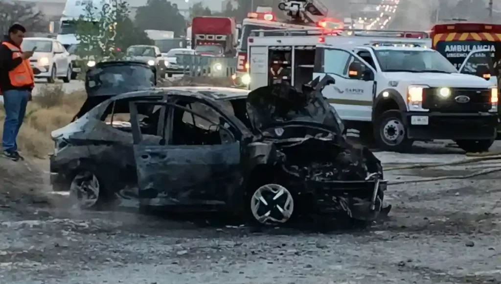 Servicios de emergencia atienden incendio de vehículo en la Carretera Federal 57; no hay lesionados.